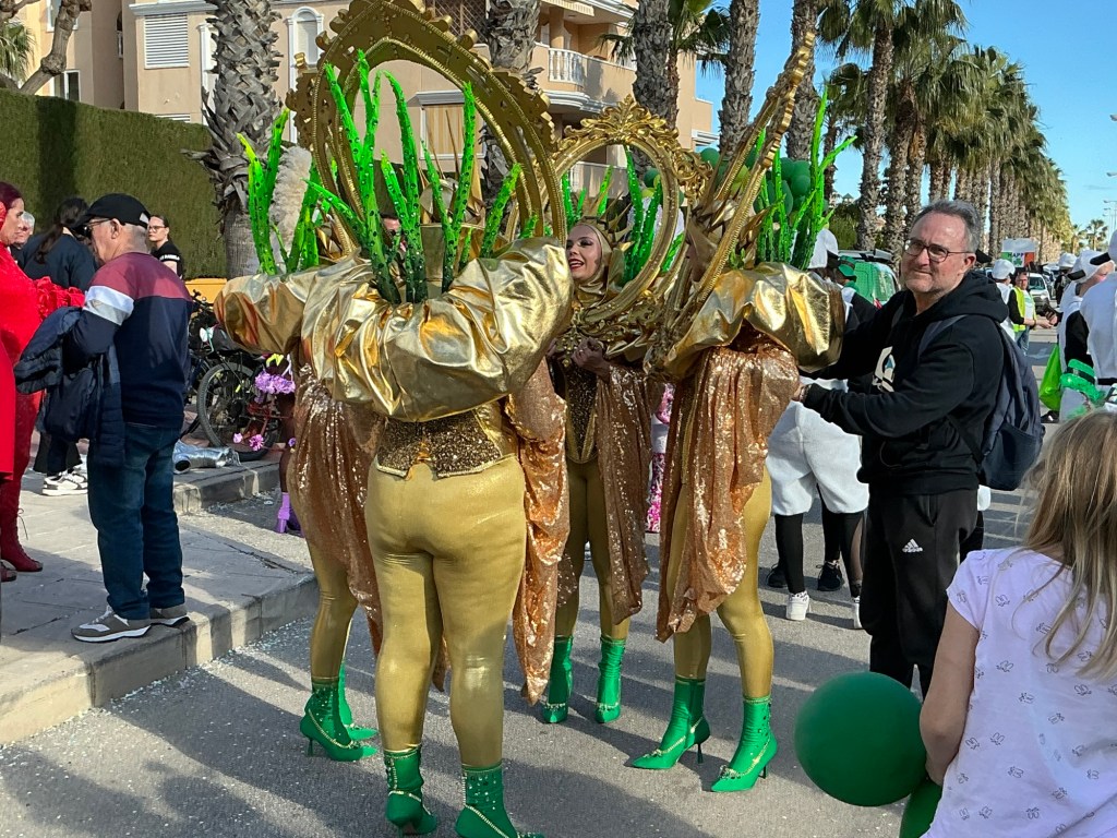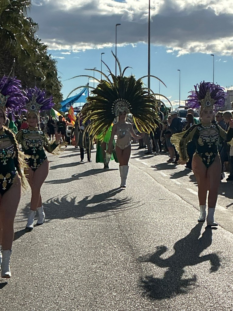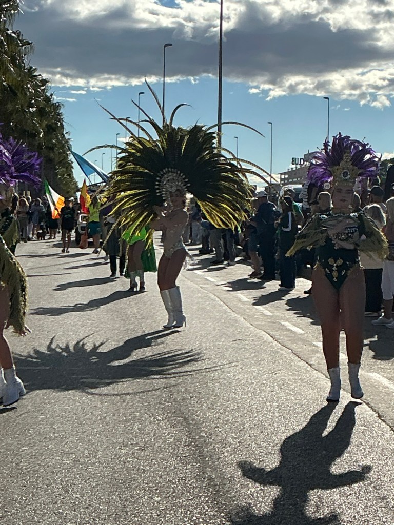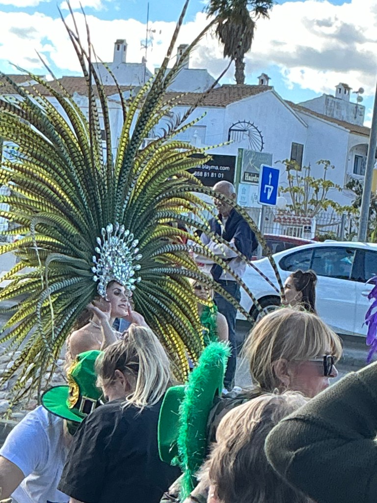 From here we went a short distance to another larger Seaside resort where Jak knew there was a St Patrick’s day parade. We parked some distance away and as we walked across the footbridge over the main road we could see the tail end of the parade. Jak soon had us circumnavigating the huge crowds and we managed to get to the finish of the parade in time to see the carnival exhibitors……wow they really were very colourful with lots of dancing, singing and fantastic costumes…