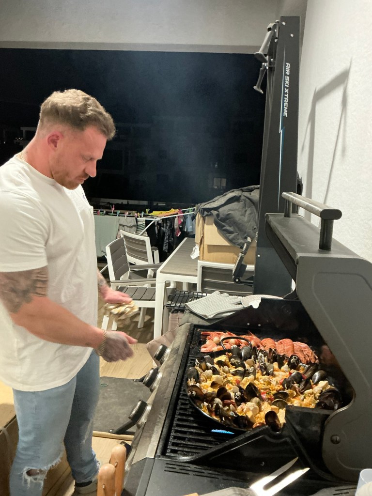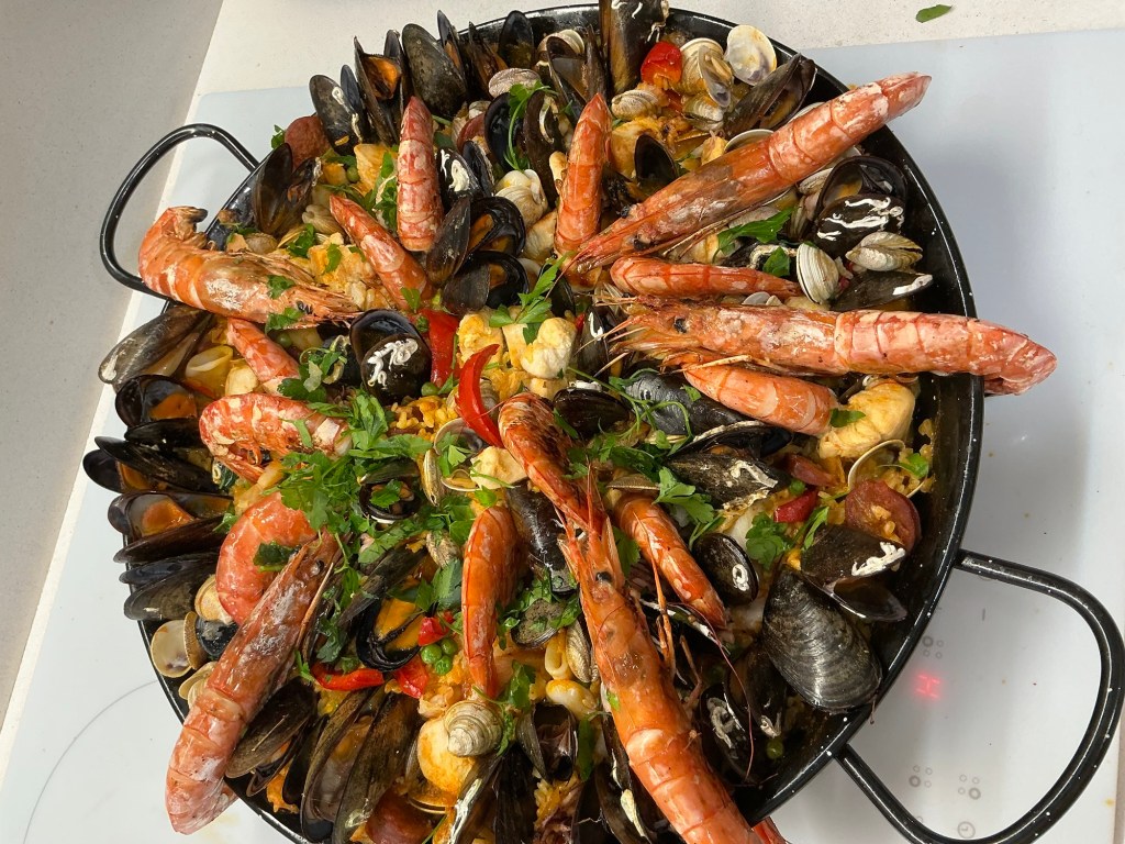 What a lovely day we had, had….but it wasn’t over yet ..back at Jak and Nicholas apartment we had cuddles with the boys…both comically over excited to see us. We watched a bit of TV. Then Jak cooked a magnificent paella, with Nichola acting as the sous-chef……wow was it tasty…