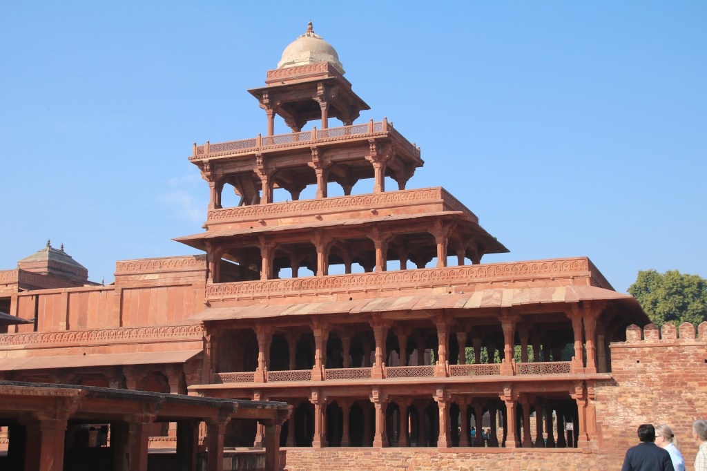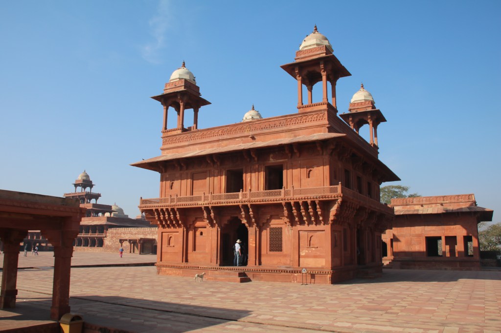 Wednesday 15th February saw us heading west towards the ‘Pink City’ of Jaipur.  We made several sightseeing stops enroute. The first being the perfectly preserved and total deserted Mughal city of ‘Fatehpur Sikri’. It was built in 1570 as the capital of the Mughal Empire but it was abandoned just 15 years later due to the lack of water. The complex of monuments and temples are all uniform in architectural style and they include one of the largest mosques in India. Due to its outstanding architecture, it became a UNESCO World Heritage Site in 1986