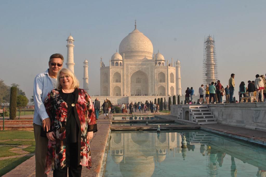 Step back to a dark evening in November 2016 Jenny and John are sat in their lounge with the TV on in the background, both in their armchairs, both on their laptops. Jenny is engrossed in some work, when John looks across and asks, ‘What do you want to do on Valentines Day?’. Jenny was somewhat irritated at being interrupted and thought it a rather strange question in November, after all they usually go to either ‘Rules’ in Covent Garden or more locally to ‘Rushton Hall’ for a meal which they book a few weeks before. A rather flippant answer was thrown back at John. ‘I want to sit on the white bench in front of the Taj Mahal, just like Princess Di did’. It certainly wasn’t the answer John had expected and he followed it with the desired silence as Jenny continued to work.