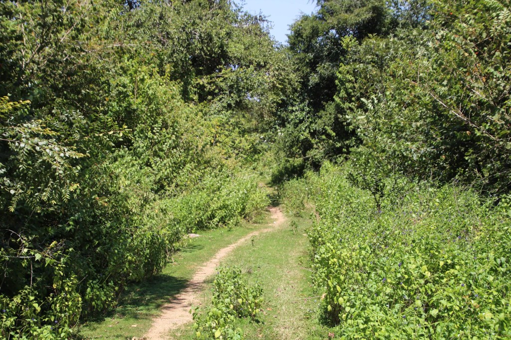 On arriving at Udawalawe we met up with our jeep and its driver – a nice, smartly dressed young man who spoke little or no English. We bought some snack lunch items, samosa, plain roti and stuffed roti from a small cafe by the gate for a light lunch. I also bought a nice cap with the Park on it…a gift for my dad…which was put to use straight away by his younger daughter!! So only slightly second hand!!. With the preparation for the day completed we set off into the park. We heaved a sigh of relief, the roads were much better condition than in Yala, they were well maintained and our driver was a considerate driver who took a great deal of care when going over bumps and potholes.