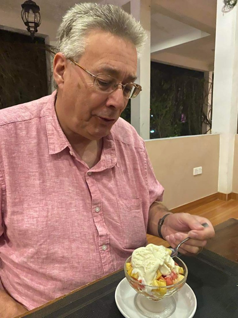That evening Suminda dropped us at the end of the road at The Aqua House Seafood Restaurant. It was only a 100 yards from Tringa Villas but as the road had a crocodile in it on our first night and evidently often has elephants wandering about, we all decided not to risk the walk. Aqua House is also a hotel and would probably be our choice if we were recommending to anyone…it had super high speed Wi-Fi, nice smiling waiters, quick service, cheaper food and rooms, a lovely clean swimming pool and an extensive menu. Having said that it didn’t have any prawns they were ..”finished”… so we made do with grilled fish and chips..no dry rice for us..what a treat… the fish was tuna and it all tasted great. It was also a lot cheaper than we had been paying at Tringa Villas. The only downside is that like Tringa Villas they don’t take credit card it all has to be cash. Suminda returned to collect us and we were soon asleep dreaming of our last Sri Lankan Safari, with our tummies full of nice tasty food.