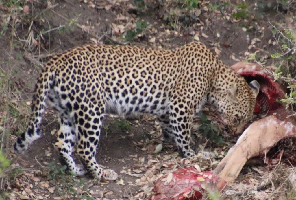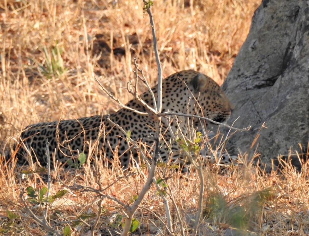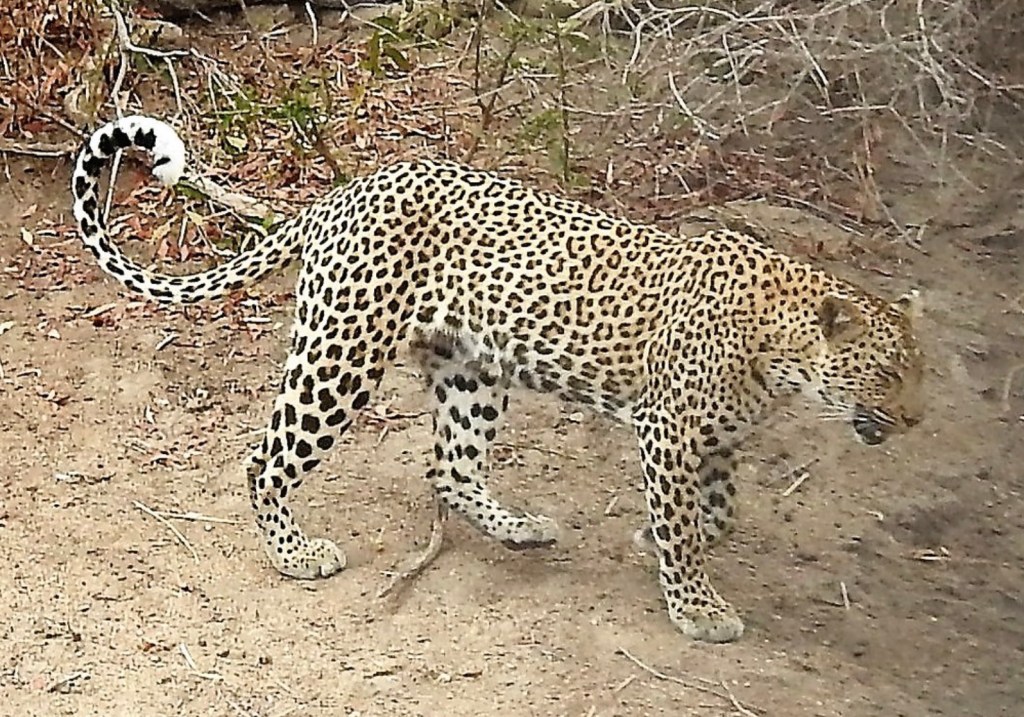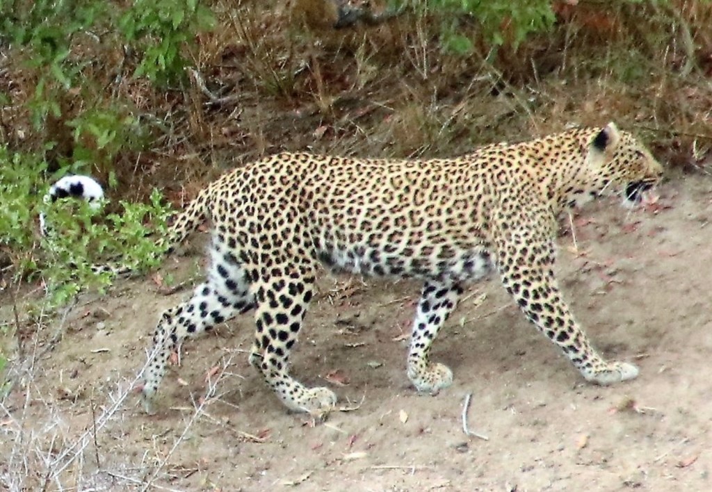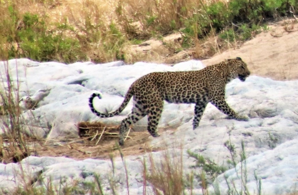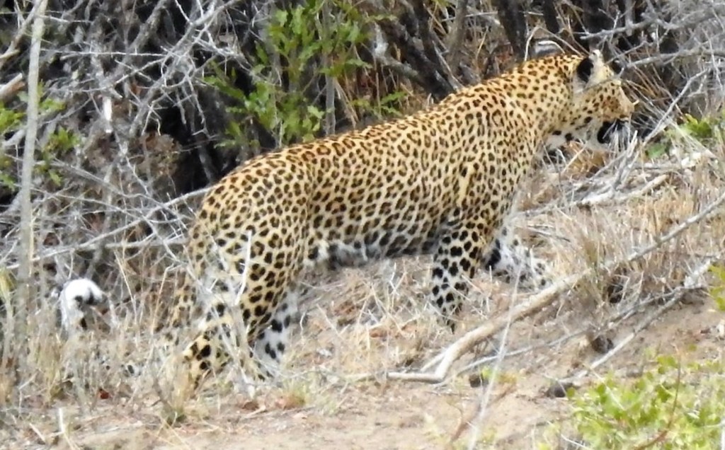 Although found through much of Southern Africa, most of our sightings have been within Kruger National Park in the northeast of South Africa. We have been privileged to have spent enough time in the park for our patience to be rewarded with many magnificent leopard sightings. Although occasionally we’ve had a fleeting view of the white underside of their tail as they retreat into the undergrowth and become invisible.