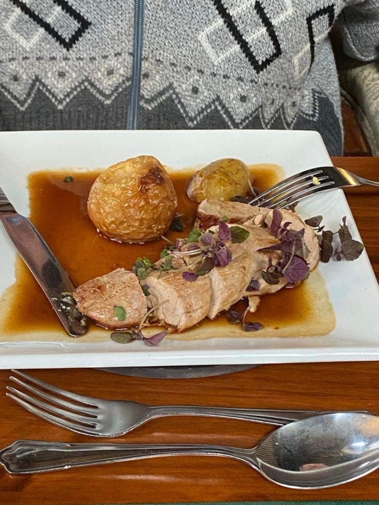 Dad had Fillet of Pork with backed apple in an apple jus.