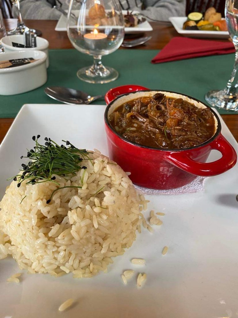 John had a beef bourguignon with rice.