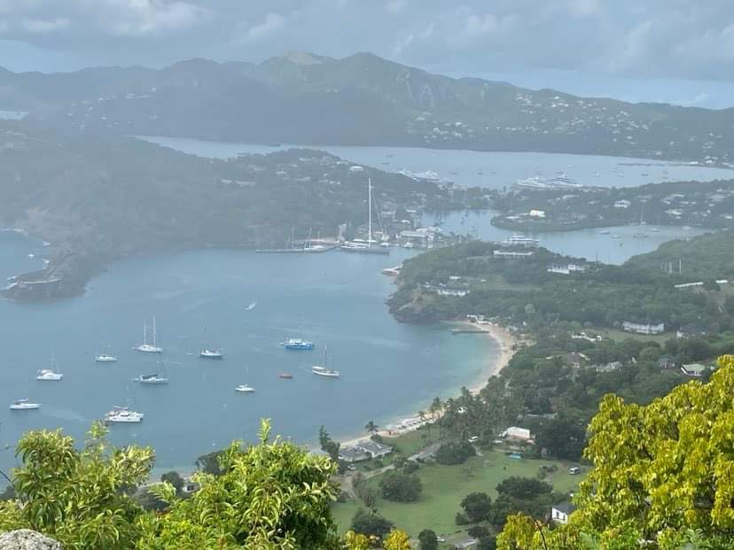 Around mid morning we ventured out ….it had been raining but the sky showed promise of a beautiful day. Wandering up the main terminal shopping area we noticed two ladies with a tour board. We asked if they were waiting for booked customers, which they were. However it turns out the customers hadn’t turned up so they asked what we were looking for. We had already decided to go up to Shirley’s Heights and the Block house on Dow hill so we could see the magnificent sights, and a little sight seeing around the island. One of the ladies said she would take us for $40 each and we would need to pay an entrance fee of $15 each to go up to Shirley’s Heights and the block house. We agreed and off we went. Auntie P was a very knowledgable, fun loving person and we were soon installed into her very comfortable air conditioned 7 seater SUV. We then embarked on a quick tour of St Johns with Auntie P pointing out all the sights. Passing the cricket ground and the Hero’s board we headed into the countryside towards Nelson Dockyards.