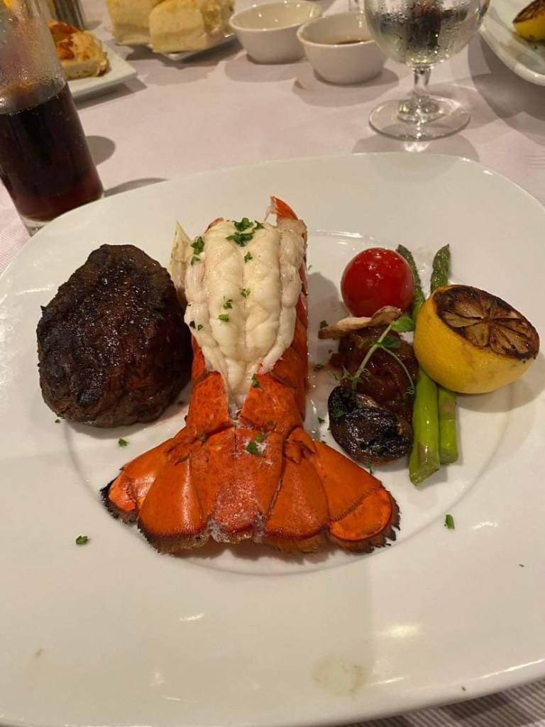 We had a lovely meal of crab cake starter, surf and turf, both the fillet and lobster were cooked to perfection, I then had sugar free ice cream and John had caramel creme brûlée. A perfect meal to end a perfect day….