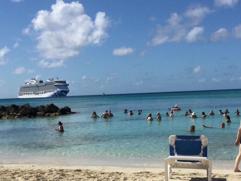 Day 13 we woke up to blue sky and high temperatures…yeah!! After breakfast with Ernesto we went to the priority tender seating area…not quite certain which part of it is priority as we waited quite a while….seems a bit like their complimentary photo session…..no different from anyone else !!!!! Eventually we tendered to Princess Cays……I love this place….blue sea, sun-loungers…and not least of all this is where John proposed to me, in the sea some 11 years ago….We swam, sunbathed…..my mother would have been proud of me because it was so hot on the sun-lounger I put the waist of my shorts around my head to protect my ears, neck and top of my arm….it was a typical ‘Mum’ thing to do…John said at least it wasn’t my knickers !!!! After a second swim, we headed back to the tenders and back to the ship. 3 hours is about as long as we could stand the heat and most of that time we were in the water cooling off….but it was still long enough for me to do a good impersonation of a lobster…do so hope that when we get home to England I won’t be mistaken as Rudolph 🤣🤣 Great day…thanks Princess Cays you never fail to deliver a happy time.
