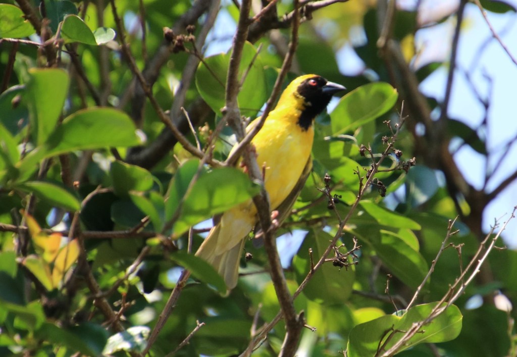 Gills garden is a hive of bird activity. There is a Southern masked weaver making a nest right outside her patio.