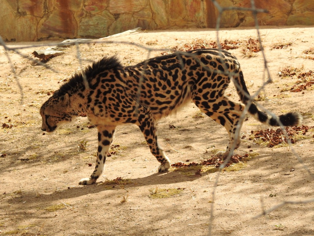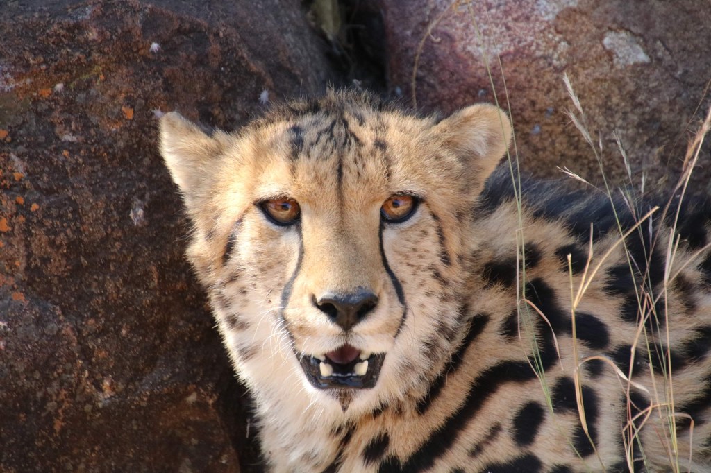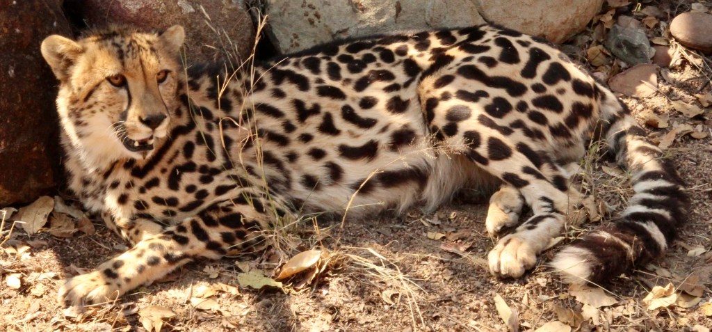 One of the very special resident species at the centre is the beautiful King Cheetah…they aren’t released back into the wild. Their rarity makes them incredibly valuable and they just wouldn’t survive the poachers in the wild. The King Cheetah doesn’t have spots but elongated shapes.