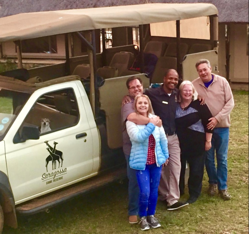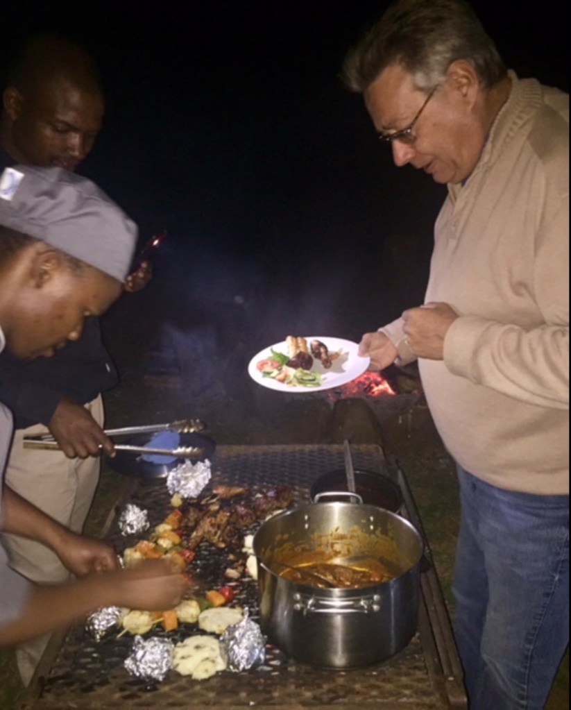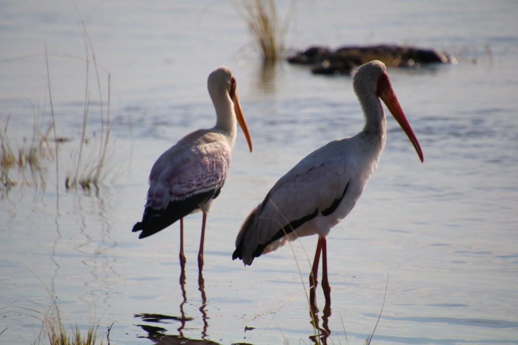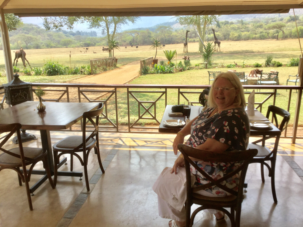 it’s a truly lovely place…we stayed 2 nights, having a wonderful early morning and evening game drive. We finished the game drive at the lake/dam. A wonderful wedding venue is on the banks. We had a bar-b-que with everything set out on the banks… The hippos were playing and a young hippo was being protected by its mum. It started to rain and we adjourned to the inside venue which was also gorgeous.