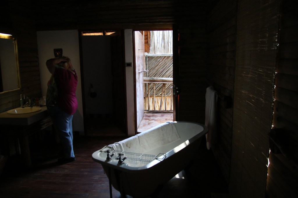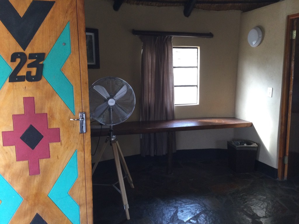So occasionally we feel we need “time-out”. Going out of the Orpen Gate puts you in prime wildlife area…there are numerous private game reserves, lodges, farms etc….they range from top of the range to more reasonable. Not far from Orpen on the road from the gate, is Timbavati Safari Lodge. It is located in Mbabat, and offers accommodations in thatched chalets with colorful traditional African design like the huts of the Ndebele Tribe. It is only a 24-minutes’ drive from the Orpen gate of Kruger. The lodge has a swimming pool and a bar. Each chalet is fitted with a ceiling fan and mosquito netting over each bed and the windows, a private bathroom with a shower. There is an on-site restaurant. While we were there we had two evenings with a BBQ in the evening. At the time of visiting they were doing evening Safari into Timbavati Game reserve..a 5* reserve at a price we could only dream of affording…..I had asked to book one of these evening safaris when I booked the accommodation….but I was told it wasn’t necessary…ummmm!!! When we arrived we asked to go on the Safari on one of our two nights, but alas they were fully booked..I was far from amused and felt rather cheated as we could have stayed in a dozen or so other places…but we always try to make the most of our adventures…so we made other plans. The lodge accommodation is slightly less basic than in Kruger, in that most things work…but you do need to be aware that it doesn’t have air conditioning – Kruger accommodation does although it doesn’t always work. We did have very nice breakfasts and the BBQ’s were lovely. It costs about £100 a night dinner bed and breakfast for 2 people.