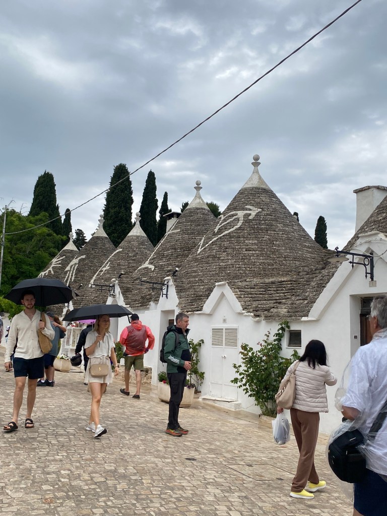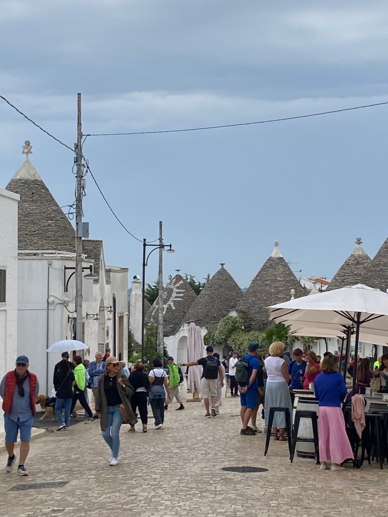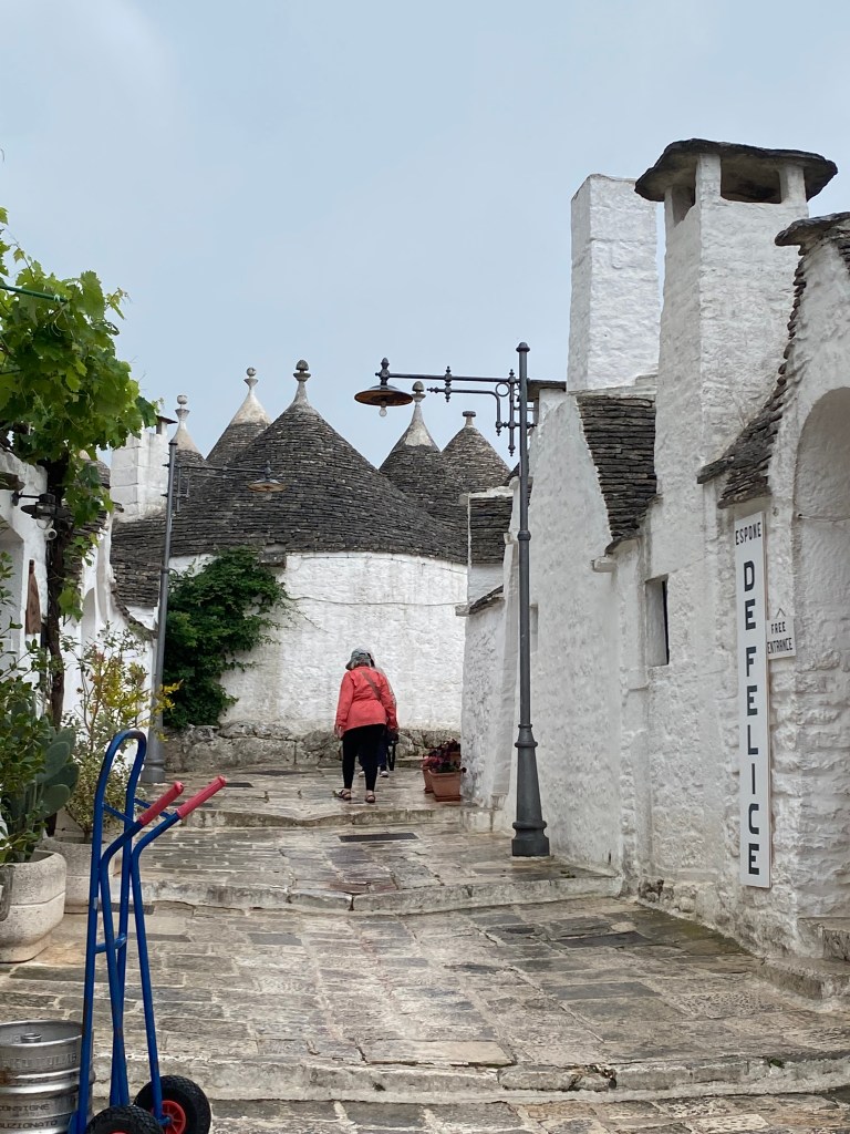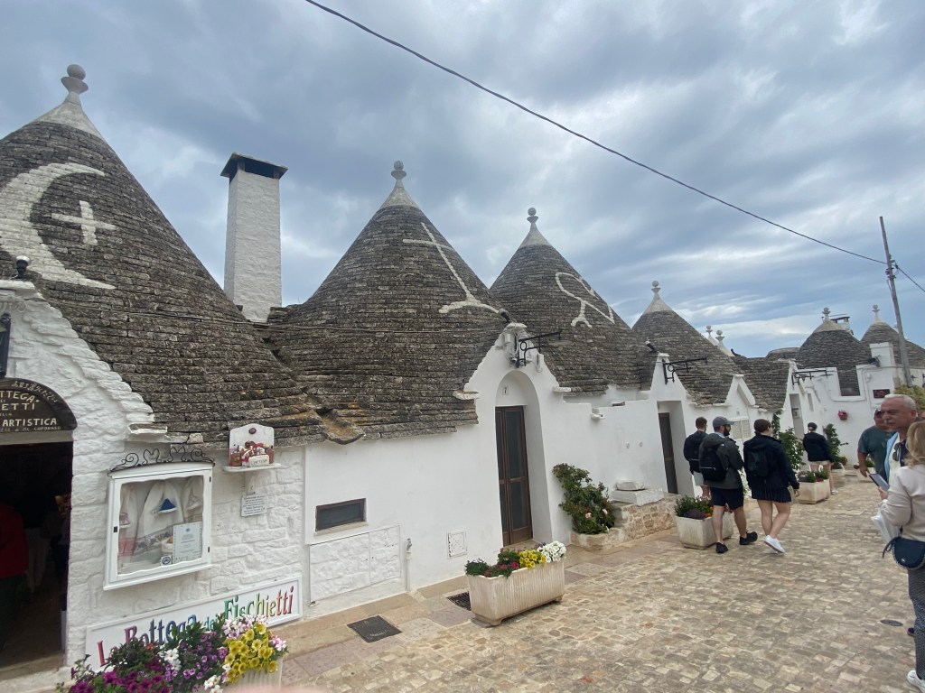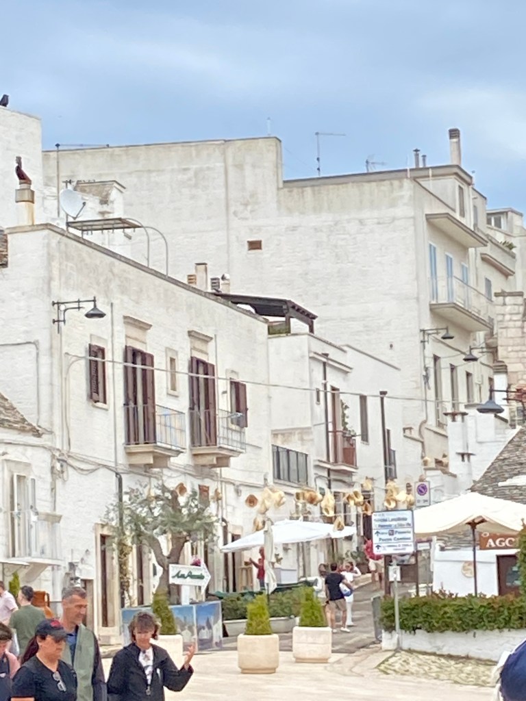 Today we are visiting Alberobello. This literally means “beautiful tree”. It is a small town near Bari in the heel of southern Italy. It has about 10,200 inhabitants and is famous for its unique trullo buildings. The trulli of Alberobello have been designated as a UNESCO site since 1996. Alberobello is known as one of “The most beautiful villages of Italy”. The bus took about an hour to get there and it parked up a 10 minute walk from the town square.