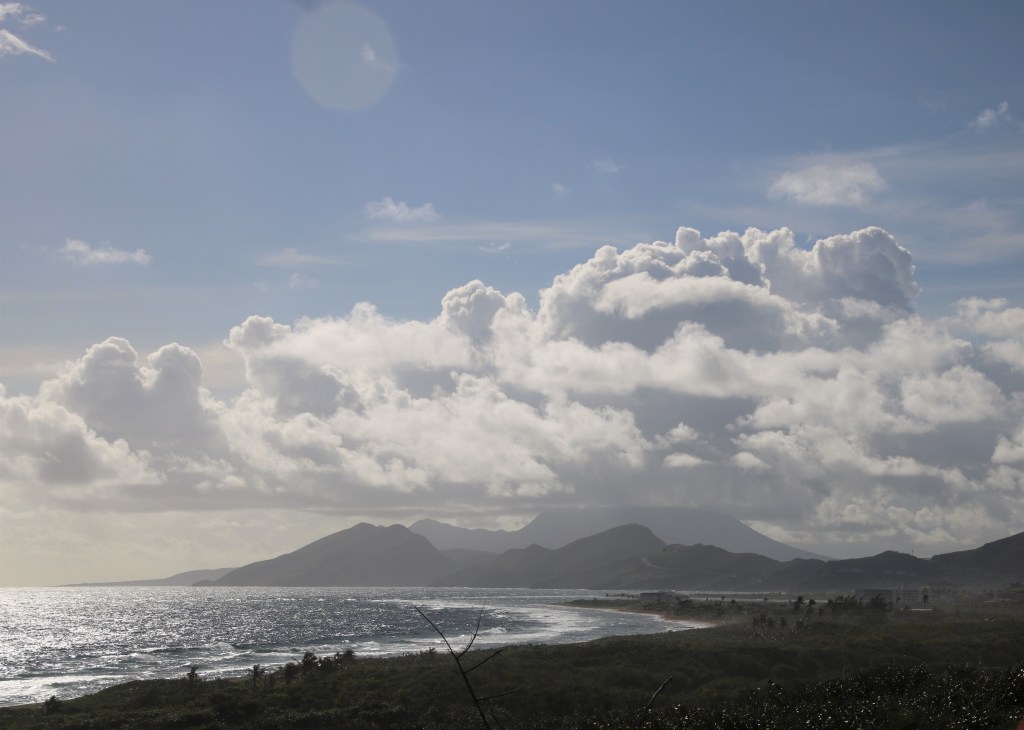 Early dinner tonight and its back to the ‘beeper’ system. That doesn’t prevent us from reaching a full theatre with over an hour to go to the start of the performance. Worse, we have to wait a while for a seat in the Explorer’s Bar (live streaming) and even that is full and standing before it has started. Carlos Oscar is the performer and he has a brand of humour that appealed to both of us. St. Maarten to St. Kitts – 147 nautical miles. Thursday, 18th January 2018 – Basseterre, St. Kitts. We’ve had the trip on the St Kitts Scenic Railway booked for some months now and it’ll be worth the early start to enjoy this ride again. P & O’s Ventura is already here and, shortly afterwards, Marella Discovery arrives. We are scheduled to tender so it’s a 0750 meet to board it. Our guide, Eustace, drops us at the start of the railway journey and will meet us at the other end for the road trip back to our tender. This former sugar cane railway is about to celebrate 15 years in its new role as a tourist attraction. The 18-mile journey will take around 1 and ½ hours and travel through parts of the island not possible to see by road, as well as giving views of sister island, Nevis, and the neighbouring Dutch islands of St Eustasius and Saba. Whilst the railway gives glimpses of the Atlantic side of the island, our return coach trip is via the Caribbean – or western – side of the island. We pass through villages which are home to the plantations and great houses of the days of the sugar cane. We also pass the impressive Brimstone Hill Fortress. This military installation is the largest in the Caribbean and known as the ‘Gibraltar of the West Indies’. It is now a national park and a UNESCO world heritage site.