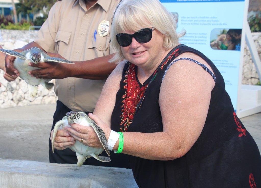We then visited the Turtle farm at Boatswain’s Beach. At this eco-sensitive attraction, there are 100 round pools containing turtles at different developmental stages. There are small baby turtles, a 600-pound giant turtle, and everything in between. All the turtles have been raised at the farm with the hope of increasing the population and preventing them from being hunted to extinction…….the sign at the Centre says …’ The Cayman Turtle Centre maintains a small population of Kemp’s Ridley’s, the most endangered sea turtle. In 1980, in response to fears that this critically endangered species could disappear completely from the wild and to ensure genetic preservation, yearlings were brought from Mexico to here to start a breeding colony. In 1984 the Cayman Turtle Centre became the first place in the world to successfully breed captive reared Kemp’s Ridley’s. In April 1999, 110 Kemp’s were sent back to Mexico to continue the cooperative research project which started in 1979’.