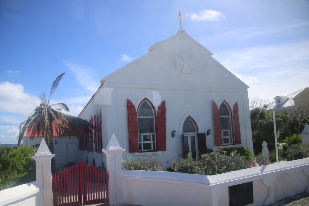Our plan was to take the island tram tour from just outside the cruise terminal. It turned out to be $25 each for a tour lasting 1 and ¾ hours and cover most of this tiny island. Next tour off at 1115 so we spend a few minutes on our sun loungers watching Carnival Glory arrive and berth next to us. That’s more cruise ship passengers than islanders here now. The Grand Turk population is just 4,800. Our tour takes us past John Glenn Drive recognising that the astronaut landed close to the island on his return from space. The capsule was ‘Friendship 7’ and the date, 20th February 1962. Then its on past Governor’s Beach. The house is nearby but the beach is not his/hers. Like all beaches on the island it is a public beach. We soon reach the narrow streets of the little capital, Cockburn Town, stopping for 20 minutes to enjoy the surroundings (and pick up a T-shirt). Worth noting that the luxury hotels are on the Caicos islands and Grand Turk is chiefly B & B and lesser class hotels only. The Osprey Beach hotel did look rater tempting! It does have a local airstrip offering inter island flight options.