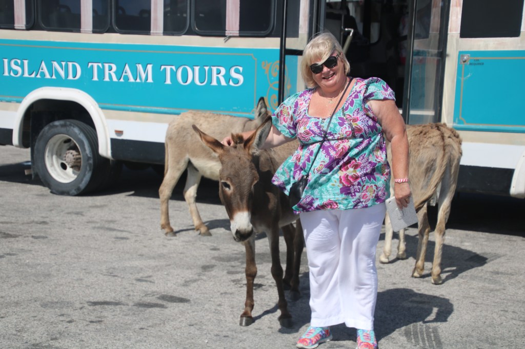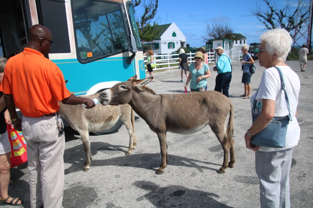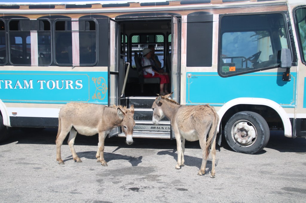 Next stop is at the very northern tip and Grand Turk Historic Lighthouse. From the lighthouse you can see our ship (and from the ship you can see the lighthouse, meaning you can see virtually the whole island in between). The semi-wild donkeys are a joy to watch as they drink ice cold water straight from the bottle! They’d happily get on the tram bus if they were allowed.