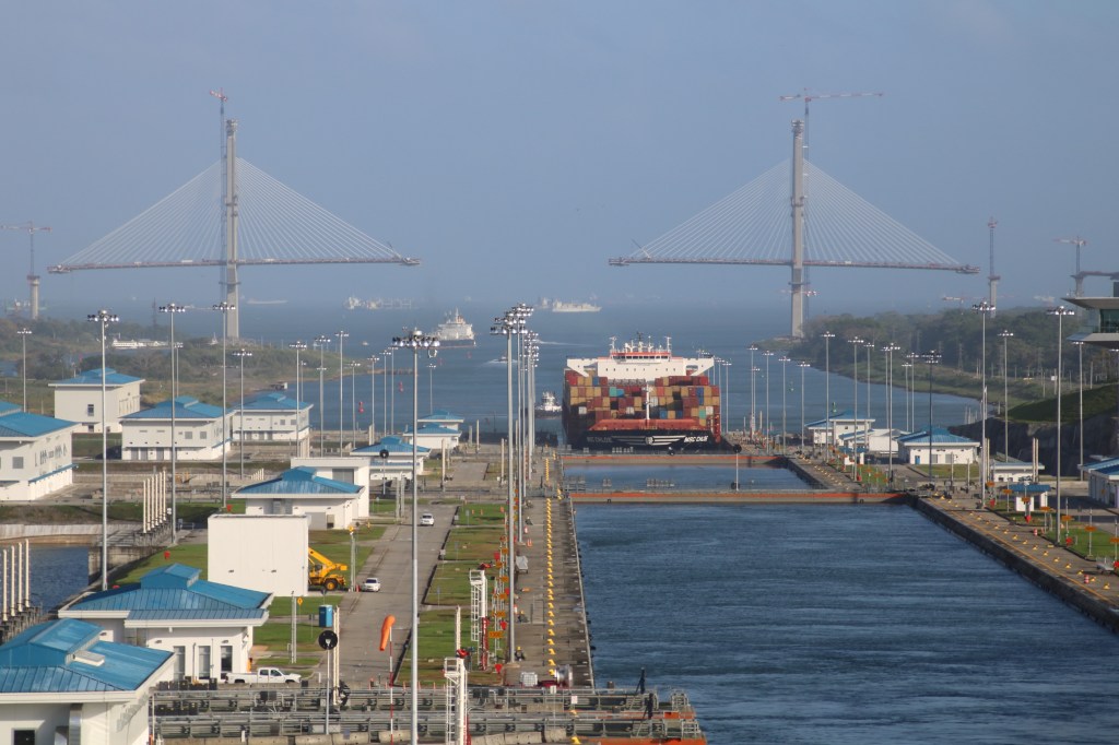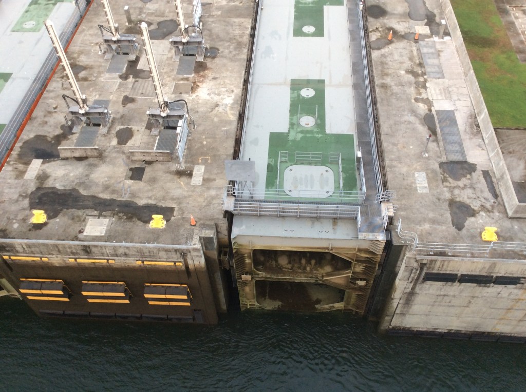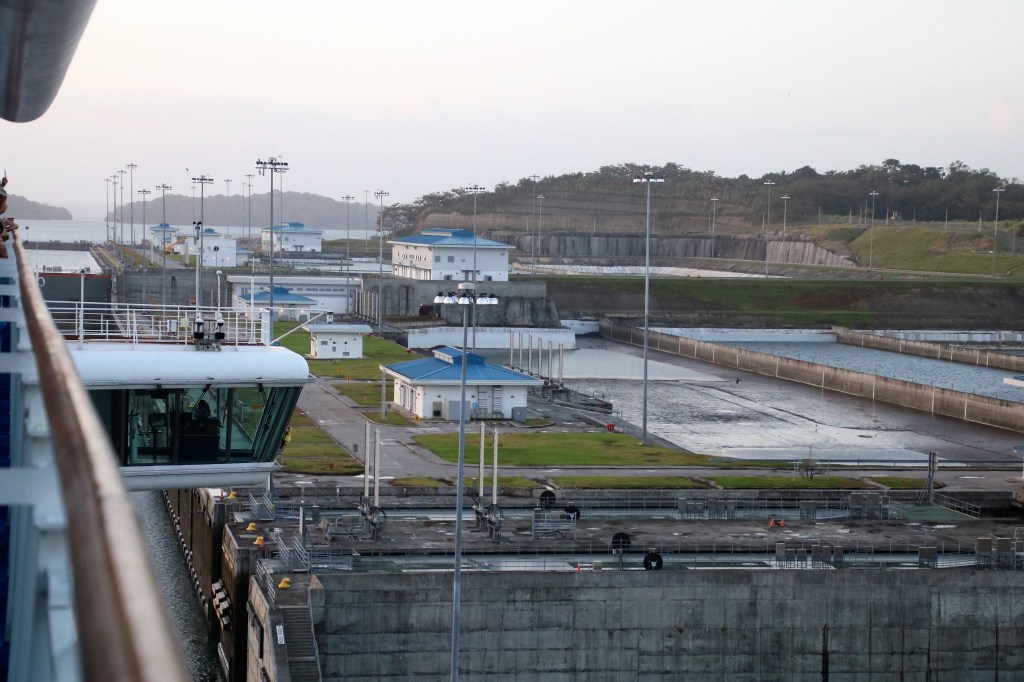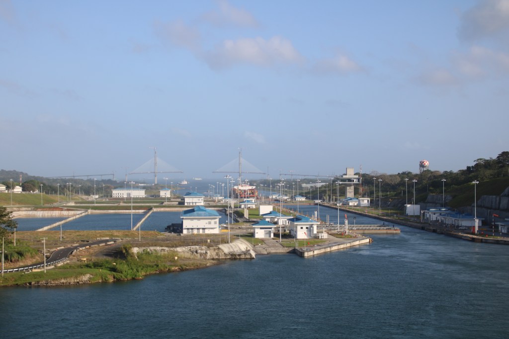 Our passage takes around 2 and ¼ hours and sees the tendering for shore excursion passengers get underway at 1030ish. Most cargo ships are using the old locks and there’s a constant procession of tankers and container ships in particular. We spend around an hour and a half anchored in Gatun Lake before our pilot comes aboard for the return transit. A similar timeframe on the descent and we’re through around 1330.