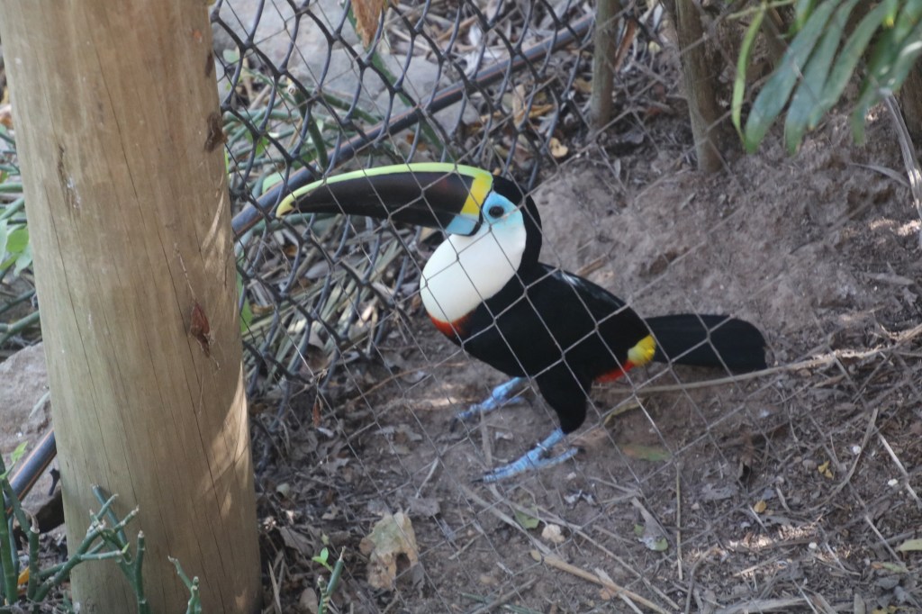 Around two hours later, we return to the ship for a (very) late lunch. Dinner follows – calamari and Szechuan shrimps tonight for both of us and the coffee ice cream is back on the dessert menu! We find 4 willing Americans to join us for the evening quiz which is based on world city skylines. Collectively, we manage 19/21. Our team mates failed to recognise Seattle (we chose Toronto) & Dallas (we went for Portland). 4 teams managed a maximum but we didn’t feel disgraced, That means we’re relegated to back row seats for Tommy McPhee – and it takes almost an hour to get anywhere near our usual ones. We stay for his second part tonight, and he gives Marlon a couple of songs. So, we retire around 2345. Princess Cays to Cartagena – 906 nautical miles. Monday, 29th January 2018 – At sea. Some movement again overnight – and we wake around 0715. We have gale force winds this morning and likely to remain so until we reach the shelter of the Caribbean Sea around 1300. So, a strong warm breeze greets us as we venture onto deck mid-morning (Jen via the laundromat….. clean clothes once again required and delivered…shes got in the swing of it now). Pinnacle entertain us for an hour or so up on sun deck. It’s around this time that the ship passes between Cuba and Hispaniola. After an afternoon siesta, it’s time to prepare for the first formal night of this part of our cruise. Showtime is a repeat of the ‘Bravo’ performance so we skip it and settle for a seat in Crooners. Tommy delivers a particularly good two-part set tonight. Tuesday, 30th January 2018 – At sea. A late start for us on this, the second successive sea day. Breakfast around 1045 and then soaking up the 84-degree sunshine as the Caribbean Princess continues on a southerly course for Cartagena, Colombia. At 12 noon, the officer of the watch advises we are around 150 miles from the nearest land – the tip of Colombia. We’ve absolutely nothing for company – no ships, no sea creatures and not even the occasional gull today. So, we enjoy the on-deck sounds of Pinnacle before heading for lunch. An afternoon siesta is followed by a pre-dinner drink, We take our table around 1845 – beef satay to start and, for main course, roast beef with Yorkshire pudding, We’ve an early start tomorrow so we watch Tommy’s first set only in Crooners tonight. Wednesday, 31st January 2018 – Cartagena, Colombia. It is an early start today. Our stay in port is short – around 6 hours only with our arrival at 0630. A warm start to the day as we head for breakfast at 0645 and await our tour in the Island Dining Room for 0730. The tour buses are waiting alongside the gangway as we board ours at 0725. This is a trip to the National Aviary of Colombia on the island of Baru. It is a 50 minute coach drive and our guide, Sergio, does an excellent job providing an insight as to how this country has changed in so many ways over the last 50 years. Cartagena is now attracting around 4 million tourists per year as a result. Around 200 species of birds call the aviary their homes. Some are caged but most are free to come and go should they choose. Their wings are not clipped but they stay because they know when they have a safe environment with prime food etc. As soon as we step inside, we see a variety of differently coloured macaws on the wing. They also have pheasants, flamingos, herons, eagles, condors, emus, swans – far too many to list here. We also spot a number of iguanas enjoying the sunshine. There are around 20 themed enclosures housing the various species and it’s hot and sticky! After spending a couple of hours walking round here, our tour bus returns us to port.