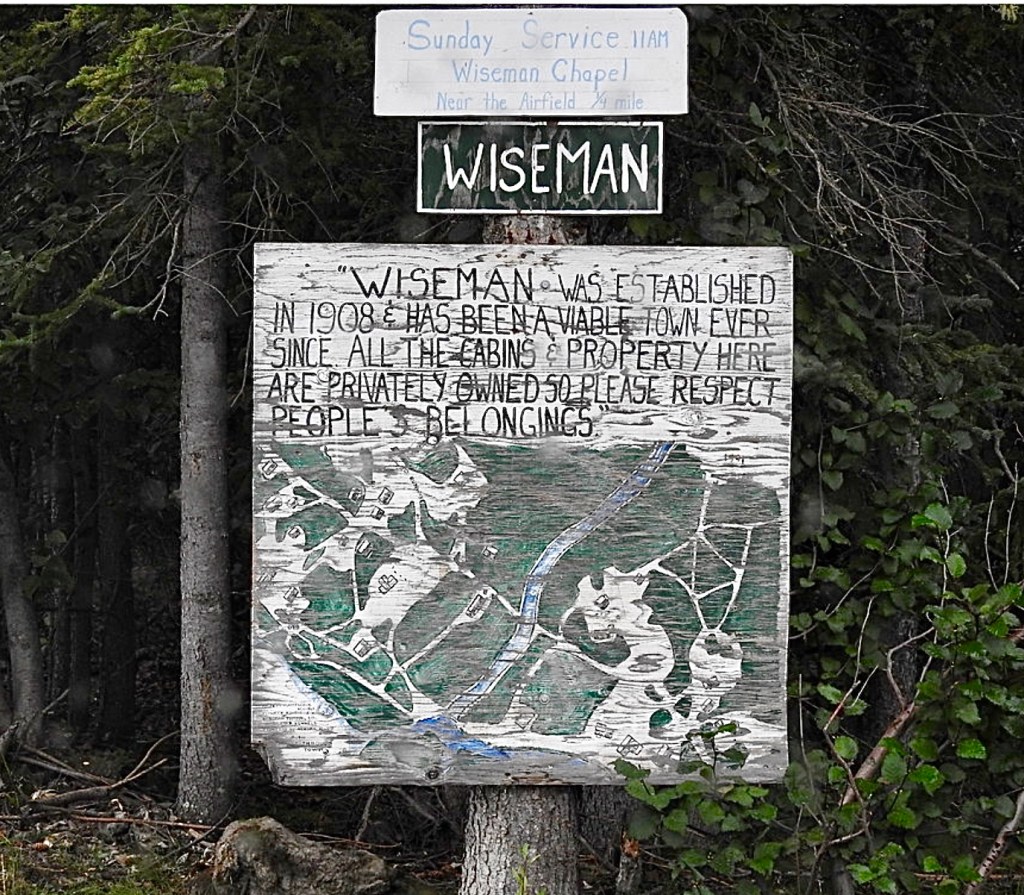 Having used the ‘Ladies’ in the truck stop/bar/restaurant/lodgings…we got into a vehicle which took us down the highway for thirty minutes and then off to the right to a place called Wiseman. Wiseman is situated in the Arctic Circle, Northern Alaska it is on the edge of the beautiful Brooks Range mountains near the Gates of the Arctic National Park, along the Middle Fork of the Koyukuk River. The community population has fluctuated over the years from a robust mining/trading outpost to current times, with a few families making it their home, when we visited it had had a population explosion!!! Increasing from 12 residents to 14!!! There are no services in the town. We were greeted by one of the residents who took us into the meetings/community centre…it’s still used for village functions but also for tourist group talks.