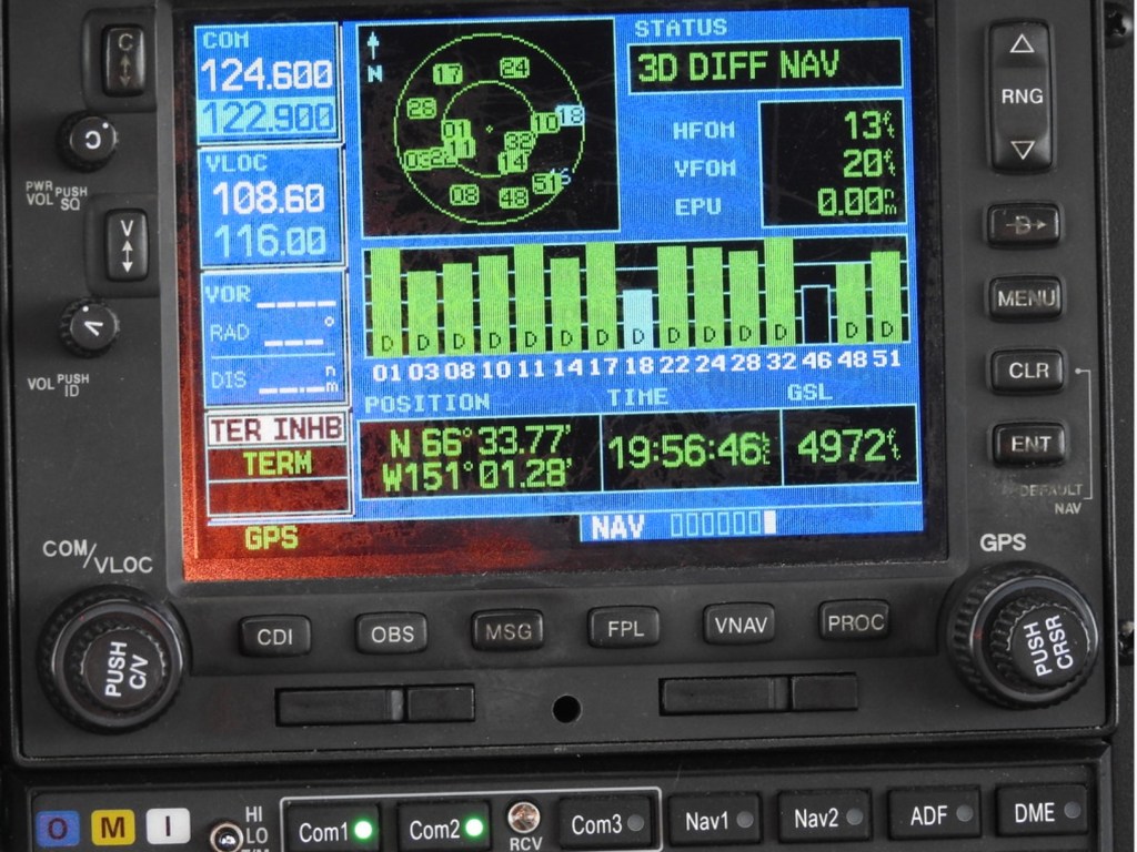 About 40 minutes into the flight the pilot told us he was detouring to circle another small town, which had a landing strip, because some heavy weather was moving in. We circled for about 30 minutes before the pilot said it was safe to continue. We were heading towards ‘Coldfoot’ a town within the Arctic Circle. As we entered into the Arctic circle the pilot told us we could take pictures of the planes dials..which we did.