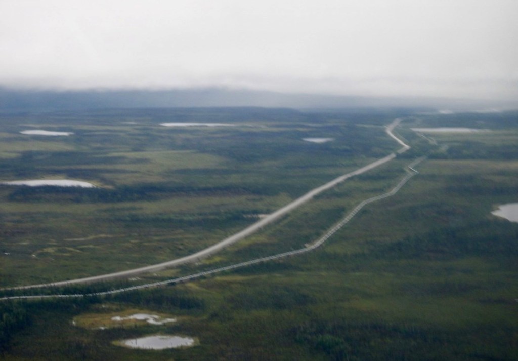 Two years later we took exactly the same route only this time, on advice, we booked into a Fairbanks hotel for a week. On our first night we found ourselves back at the office on the runway…our chariot awaited us..it didn’t half look small as we boarded our 6 seater plane. Handbags were stashed in the lockers in the wings. We squeezed ourselves in, with John next to the pilot and me behind him, 4 others joined us and we were soon in the air. The flight time is just under an hour. Looking down we had a good view of The Dalton Highway and the Oil Pipeline.