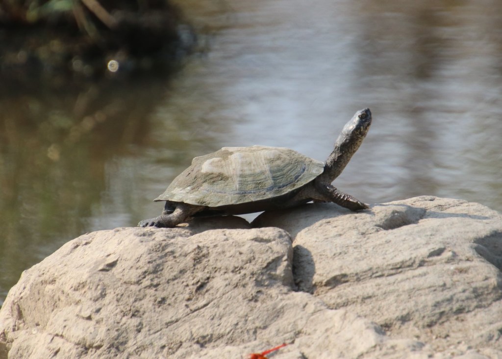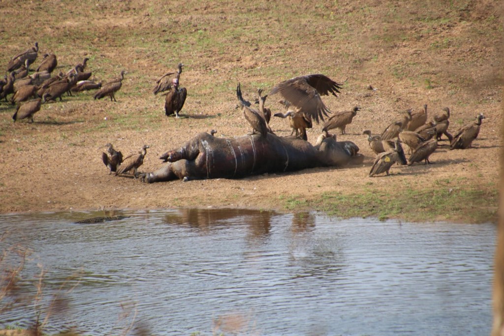 Stopping at the dam we ate our lunch watching the hippos and their young frolicking in the water, while a hooded vulture watched on.