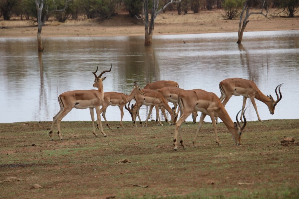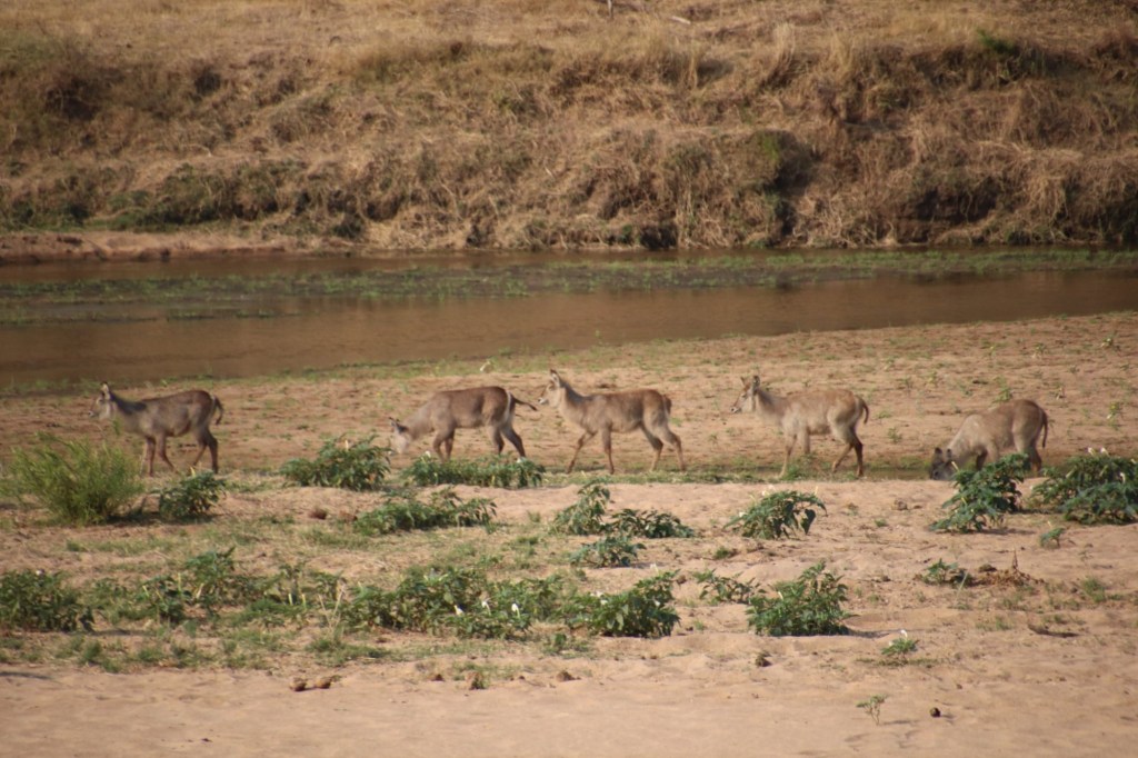 We headed down the 9km tar to the main road…not a single sighting… oh! John had selected Zebra and I had selected giraffe as first spot….We turned on the tar towards Satara. It was a cold morning but slightly brighter than the day before. Our first sighting were 3 warthogs in the riverbed, followed by 3 waterbuck.