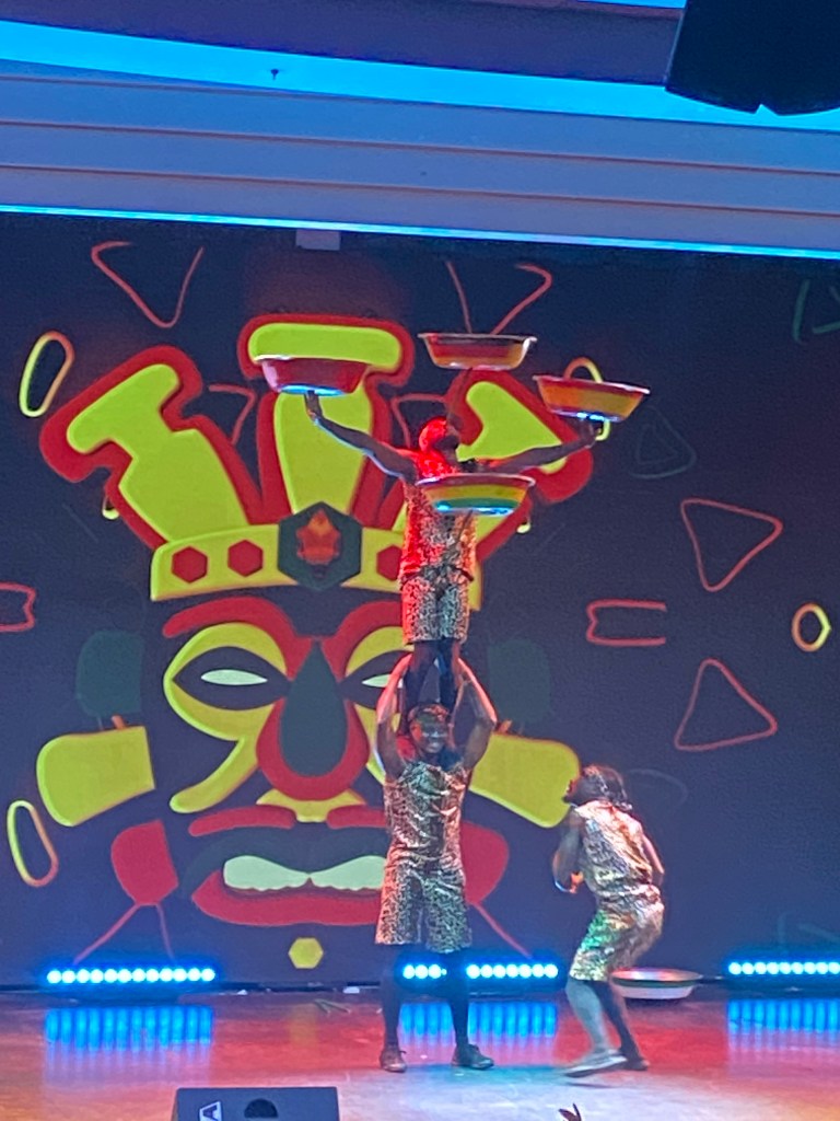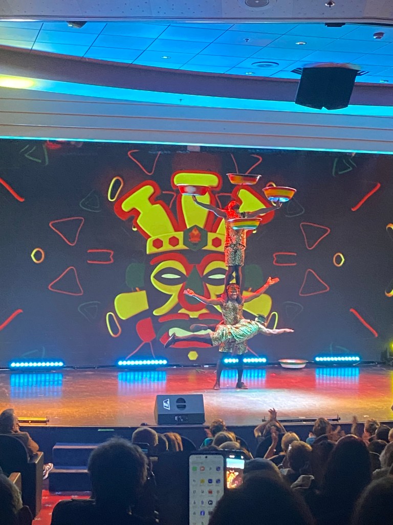 Before starting the new day I think it’s important to give you a quick glimpse of our theatre experience yesterday evening. We seated ourselves in the theatre about 50 minutes prior to the start of the show. We had a choice of seats but as the time got closer to its start the theatre got really full. The show was called Storm… well!!! Wow! Wow! Wow! Cirque de Soleil you better watch out…. This was one of the best Cruise Ship Theatre shows we have ever seen