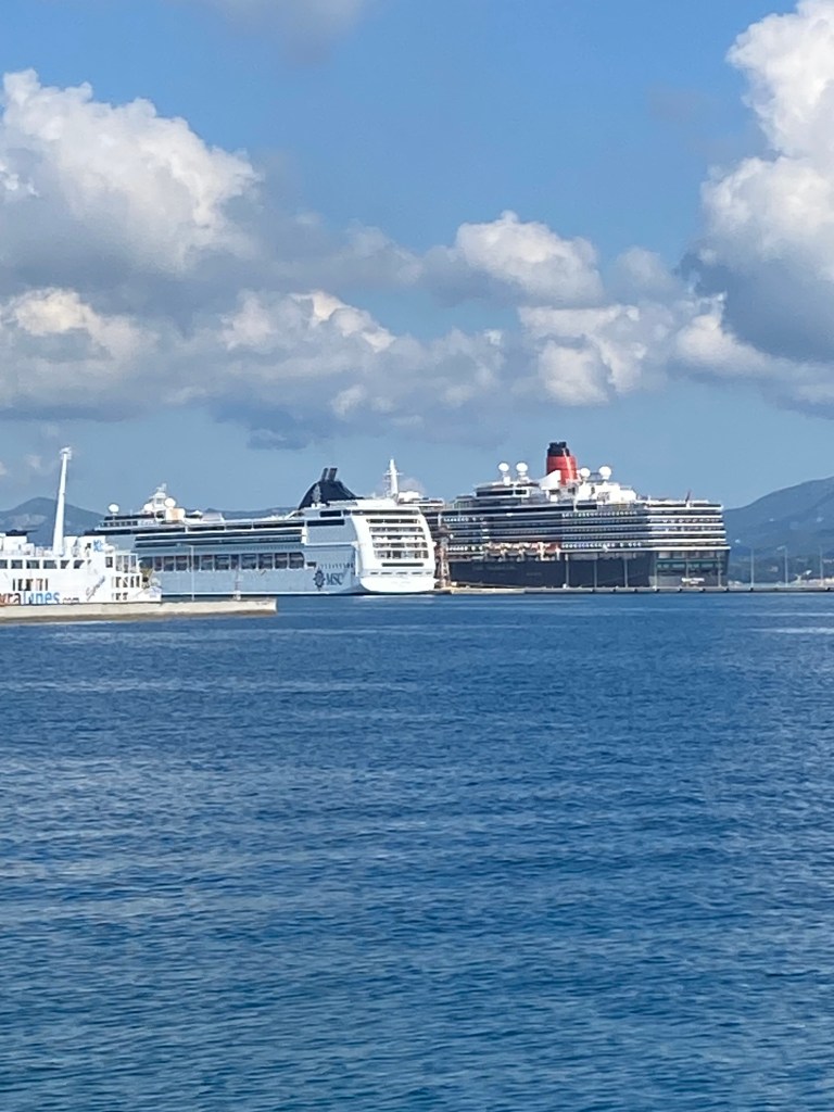The day started with our ship pulling into Corfu dock next to The Queen Victoria, a Cunard Ship.