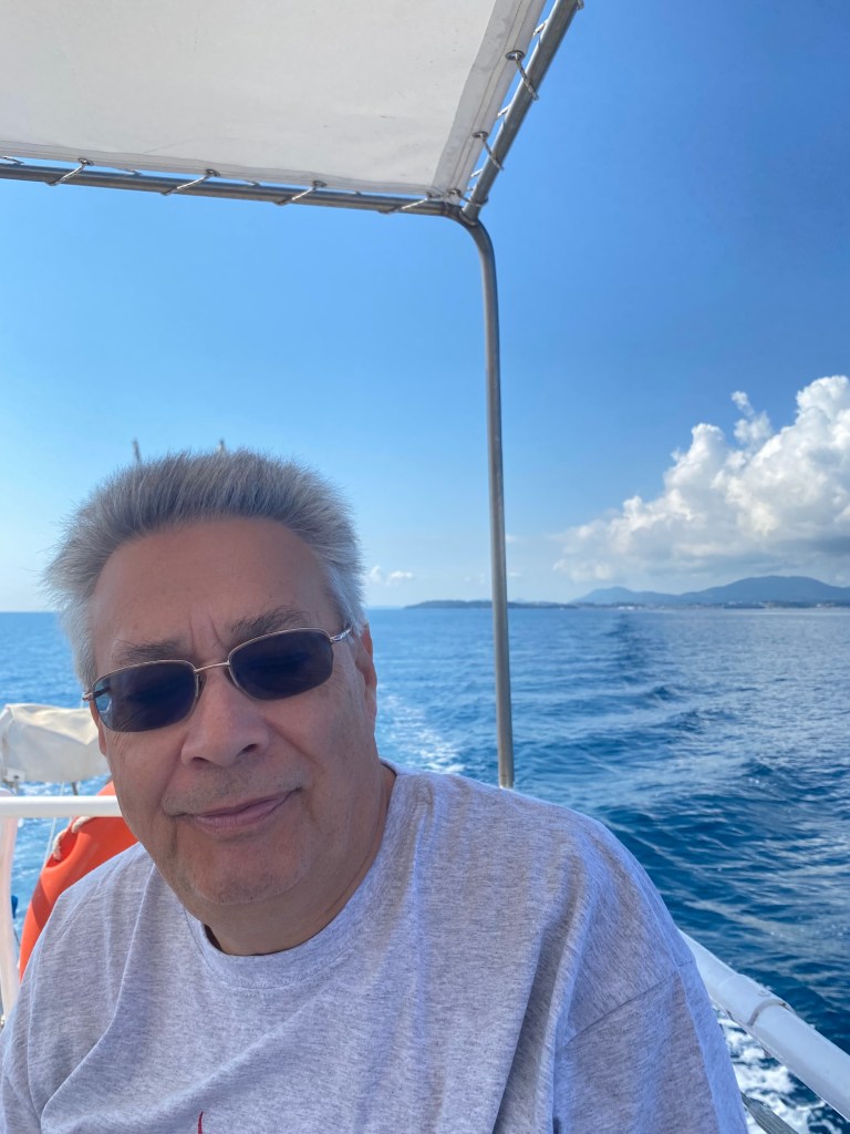 Then on to the theatre to wait for the start of our excursion….. As we have visited the sights of Corfu before we had selected a scenic coastal cruise so we could see the island from the water and there were chances of seeing dolphins and turtles. 9.35am our tour was called and with what seems to be the normal amount of pushing and shoving by some very loud Italians we headed out to the coach……. we have never cruised with so many Italians and I am certain they are not all rude, loud and very pushy but those that have been around us on this cruise have certainly shown themselves in very poor light when it comes to good manners and common decency towards other people. ….. Rant over !!!!!