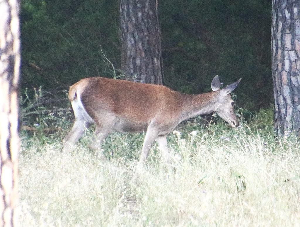 Having got to the Parks board office an hour early we had hoped our tickets would be number 1 giving us the first choice of seats on the bus…but alas they were No.7…. Never mind…. We waited out the hour before boarding the bus. We got a good window seat so we were happy. The bus was much bigger than yesterday’s , it was a 30 seater. Lucia gave us a warm welcome and off we went again. This time we saw far more cows grazing, prior to seeing a big herd of deer. We looked around the eucalyptus tree stumps for both rabbits, who evidently have their burrows there, and Linx, who evidently hunt the rabbits there…..but neither wanted to show them selves to us.