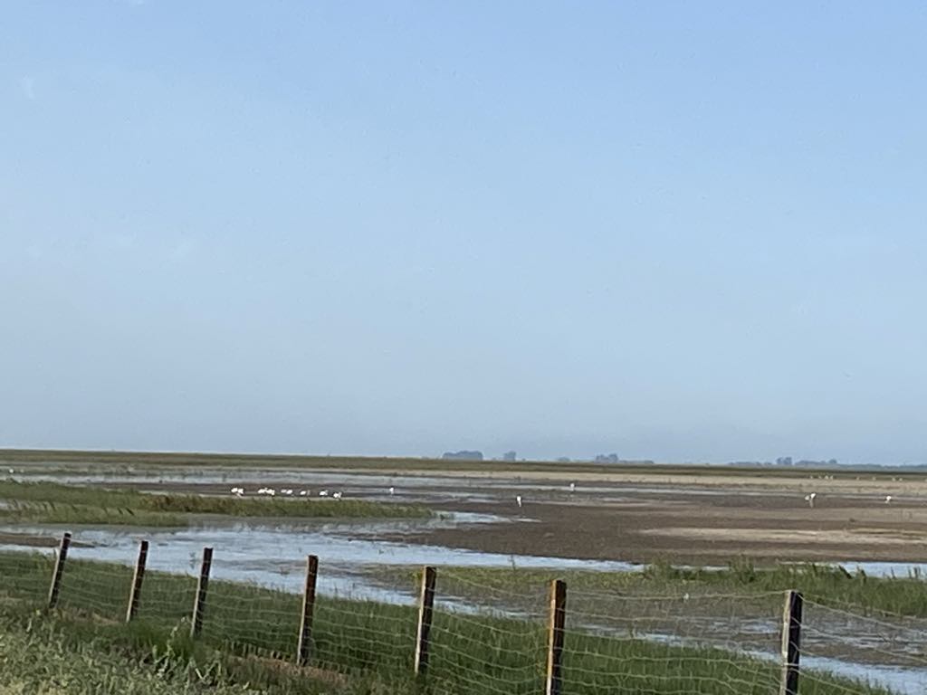 We disembarked at the same spot as yesterday. There was a marked difference in the bird species, in that we didn’t see any flamingo, but large flocks of spoonbills. They always make me laugh. We also saw some grebe, a pair of shovelers, a coot with their young and a lot of black/ glossy ibis.