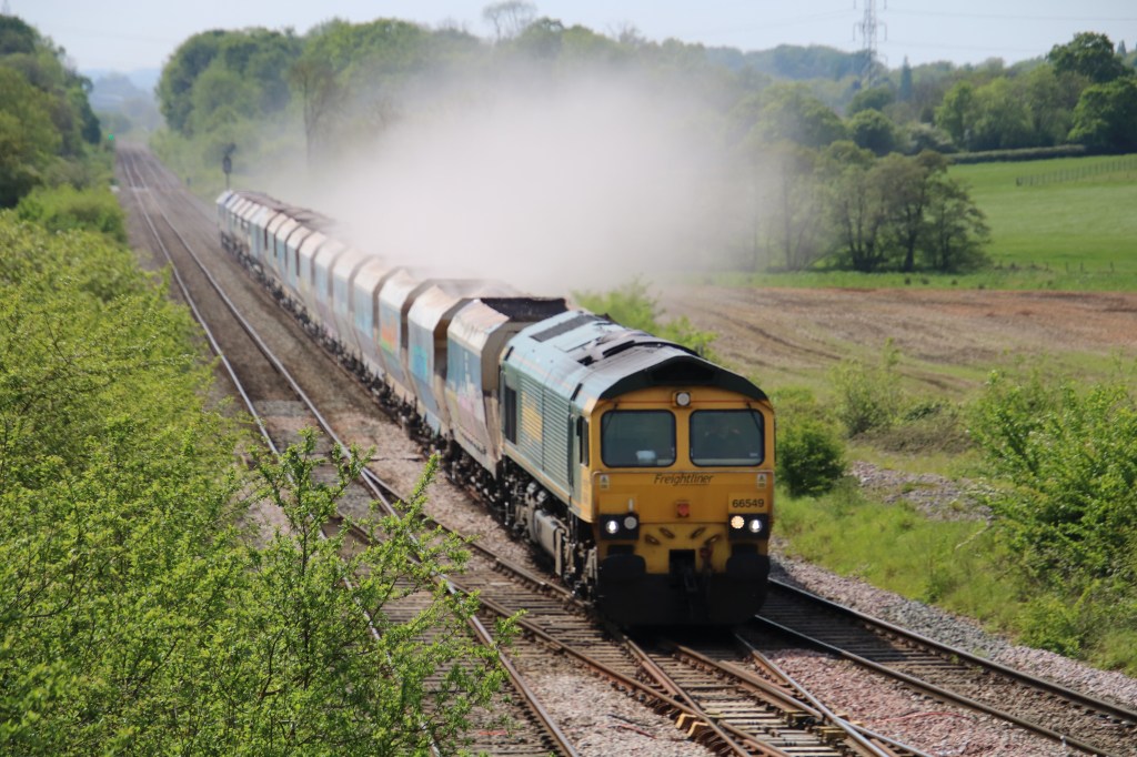 We made good progress with very few hold-ups, on a road much travelled by us. Heading straight through Bicester and on to the A34 then turning to Swindon on the A420. There is a delightful restaurant and Motel called Mollies, on this road. A room would cost you about £75.00 per night….but I am ashamed to say we only usually stop to use their very plush facilities!!! On reaching Swindon we joined the M4 west towards Bristol exiting at junction 17. From here we took the A350 signposted to Poole, bi-passing Chippenham and through Melksham towards Westbury. Dad likes going this way as he had 6 weeks training in Melksham when he was drafted to the RAF for his National Service in 1955 until 1957. We are always interested when Dad talks about his past….his actual main posting was at RAF Upwood, near Ramsey. We’ve taken him to visit this now derelict shell, which has been vandalised and graffitied all over….Anyway I digress……..When we got close to Westbury we wound our way down a farm track and parked up near the railway line….this is a spot we know well and have spent many a relaxing day with John photographing trains and Dad and myself enjoying the beauty of the unspoiled countryside around us…….we were actually here when I read on my iPad, the up to date news, that Boris Johnson was putting the country in lockdown……we had to race back to our hotel and pack up and drive the 3.5 hours journey home….again I digress… today we sat and had coffee and our sandwiches, enjoying watching my dearest husbands jubilation at photographing a few trains he hasn’t already seen this year.