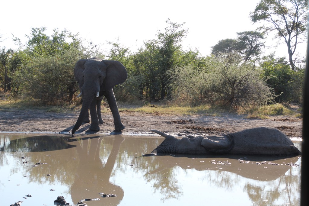 With new battery fitted off we went again…before we got to the Reserves gate we saw a variety of wildlife both dead and alive……this included the sad sight of an elephant who had got stuck in the mud of a waterhole and died, another elephant was showing its last respects.