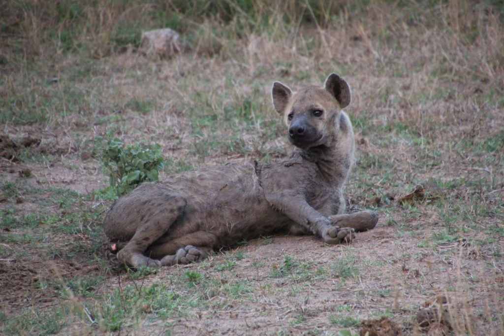 Returning to the gate it was pitch black and Loyd dropped of the clients he had picked up…some of the young women started walking across the carpark to the toilets…Loyd shouted at them to get in their car….looking at us out of the darkness next to the toilets was a large hyena.