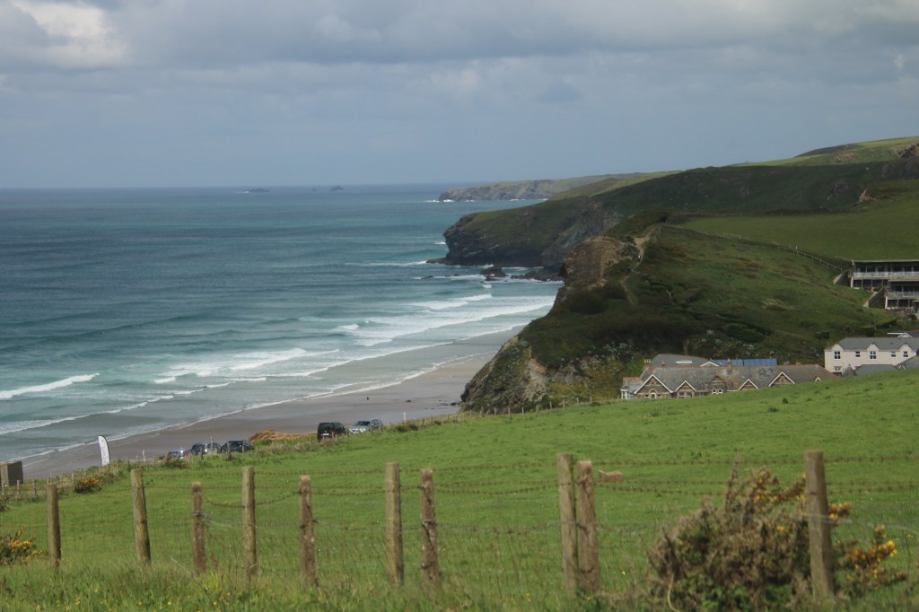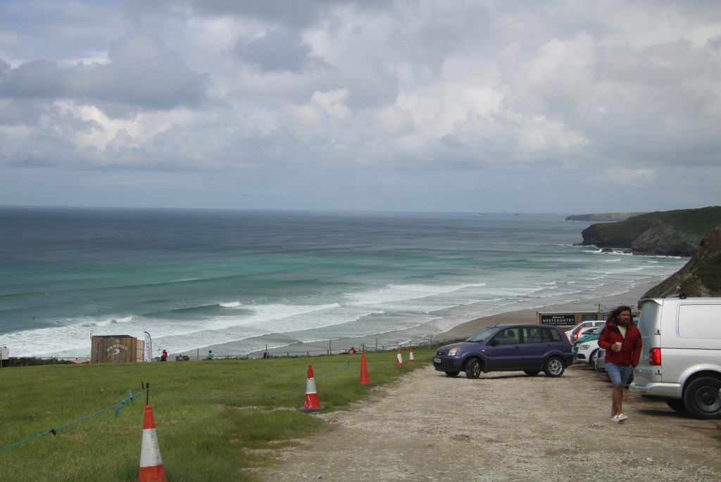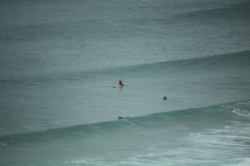 We retraced our tracks down the bone shaker road back on to the main road and headed towards Sagres. John told me to look out for a right turn to some unpronounceable place in about 11 kms time. Sure enough the sign to Carrapateira appeared. This was a much more touristic place and we followed the sign to “ Pontal”. We passed several car parks and continued to climb up a narrow road. At the top lots of cars were parked. There was a magnificent view of a busy beach below with kite surfing amongst many of the activities in offer. We sat in the car, out of the wind and enjoyed our picnic.