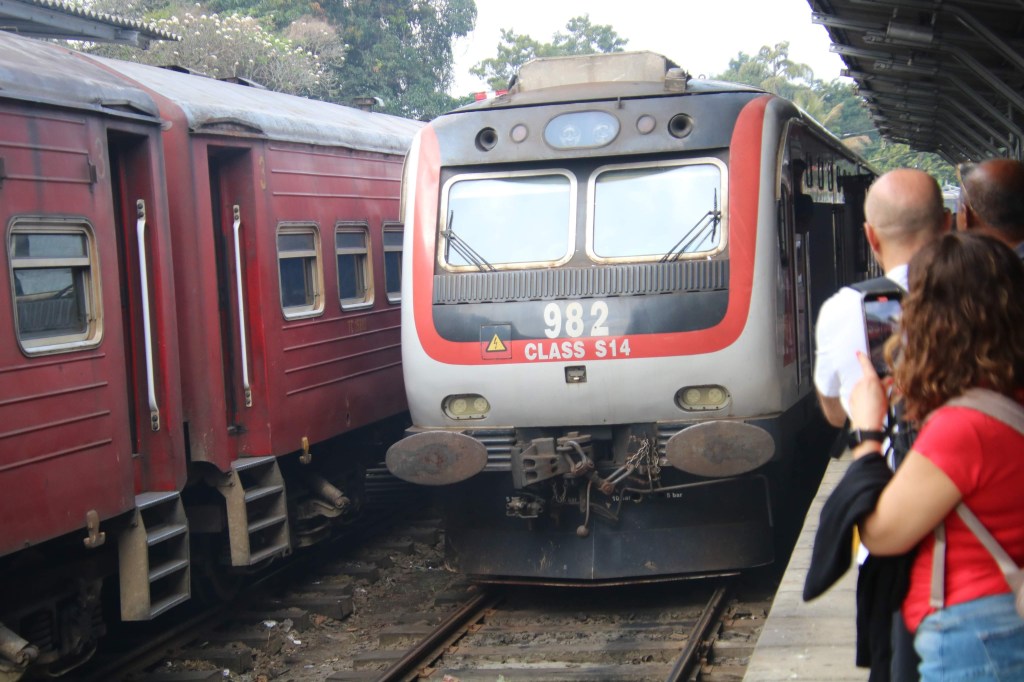 At 8.30 a train pulled in….fortunately Suminda prevented us jumping aboard as it turned out to be the one prior to ours which was running late. A lot of the platform emptied on to this train and it looked al1 ready to depart when the green light turned back to red. It appeared that our train was now coming in on platform 3 instead of platform 1 and as it’s a single track line it had to come in before the now very late one could go out. Anyway we changed platforms and at around 9.00 am we boarded our train. Our reserved seats were at the front of the carriage and had a nice little table, reclining seats and loads of legroom…we would be comfortable enough for the next 7/8 hours.