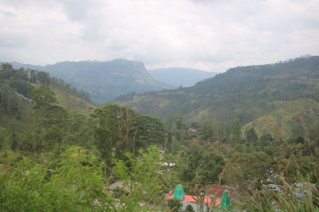 We finally departed at 9.15am. The first hour was spent rattling through the suburbs of Kandy. On leaving this large town behind we began to encounter spectacular scenery. The next few hours were spent very pleasantly looking at mountainside tiers of tea plantations, formidable waterfalls, flat rice ‘ paddy’ fields, vegetable plantations and much more. It really was fantastically scenic as the train meandered hugging the side of the mountains. On our journey we stopped at nearly 30 stations only a few people got on and off until we got to Hatton when a few more joined us and a few departed. At Nanu-oya a lot of people anlighted and even more embarked. The area is popular for visits to its tea plantations and its old colonial buildings.