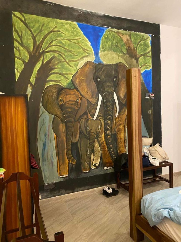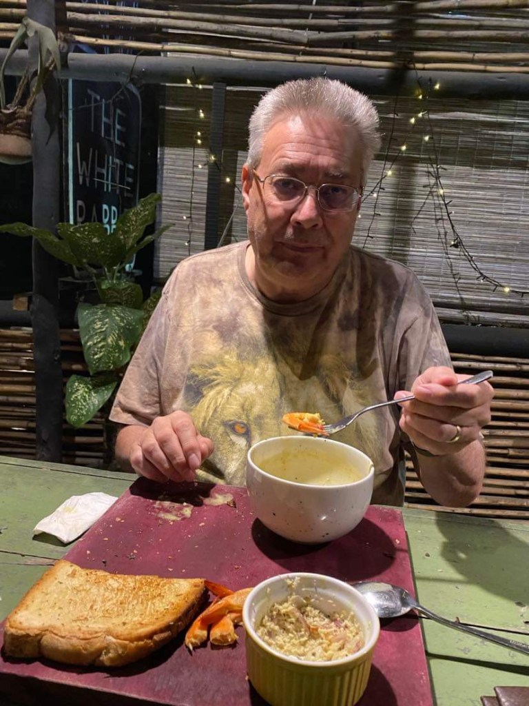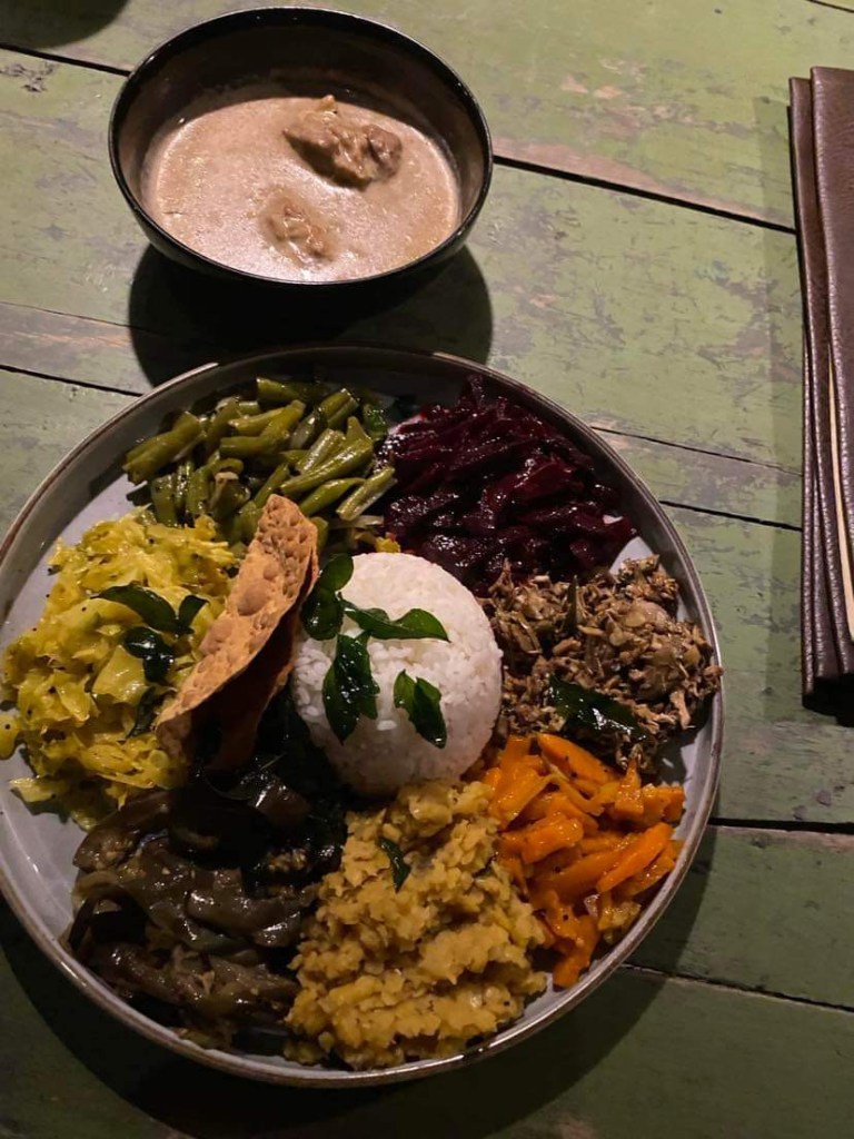 At 7.30 a Tuk-tuk came and took us both down to the restaurant. The White Rabbit, it transpired, is a much sort after restaurant for the backpacking fraternity who frequent Ella. I had a Sri Lanka vegetable curry with chicken. This consisted of bean, beetroot, dhal, cabbage, okra, banana flower and carrot curry’s around a mound of rice and chicken curry in a bowl…it was divine, the best I had had so far. John had Coconut curry prawns with coconut sambal and toasted wedges of bread ..it was all very tasty…I didn’t notice until John mentioned it, that we were the oldest in the place by about 40 years!!!.