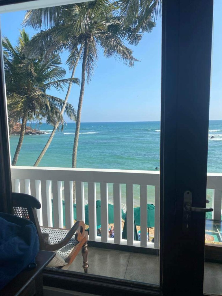 Suminda asked reception if it was possible to have breakfast at 8.00am the following day as we had a lot we wanted to do and they readily agreed. As we were having breakfast one of the reception team, he could be the manager, came and asked us if we would change rooms to a sea view ‘ at no extra charge’. We readily agreed, he said he wanted us to give the hotel a good review. After breakfast we did our bags up…well nearly one case needs a repack as it won’t close!!!! And moved to a sea view on the first floor…heaven… only half the number of stairs. The room was absolutely delightful….a very large 4 poster bed, superb views of the sea, the sound of the wave crashing, large bathroom with jacuzzi shower, enough room for both suitcases to be open at the same time….if you decide to stay here make certain you book a sea view room not a standard room…it’s gorgeous