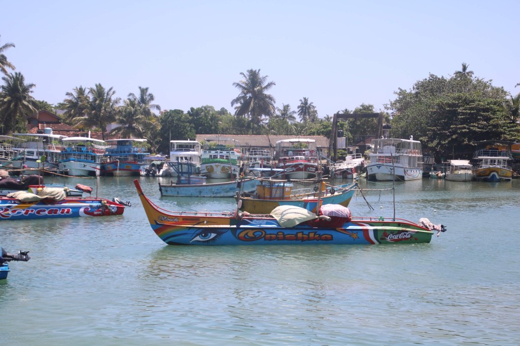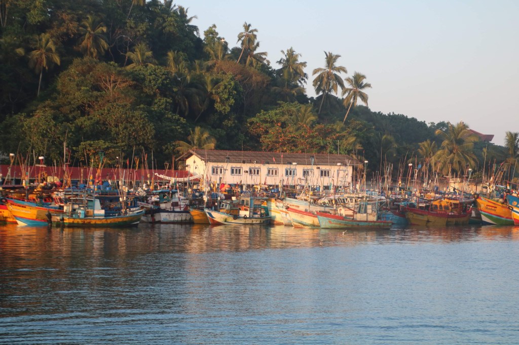 Beethoven by the Bakers Tuk-Tuk did not wake us at 5.30 am…mores the pity ( some people are never happy!!!) it was instead the good old iPhone alarm ….we scurried into our clothes and descended at 5.50am…only to find no one about and everywhere locked up. On the door was a message with 3 numbers to phone if you wanted help…..well! we did …. we needed to get out..so I went behind the reception desk and used their phone to ring the first number…after some wait it was answered and I told the man on the end we needed to get out ‘quick’, quick’. John in the meanwhile had managed to unbolt the front door and we descended into the front drive only to find the gate chained and padlocked. Suminda was the other side waiting for us, as he began to dial the number he had, a man appeared and unpadlocked the gate….Having received our ‘get out of jail card’ we were transferred by Suminda to one of the whale watching offices, from where two tickets were duly purchased. At 6.30 am be embarked on the Whale Watching boat, we climbed to the top deck and took the only two available seats together. All aboard by 6.45am and we were set a drift, passing out of the busy fishing harbour into the Indian Ocean.
